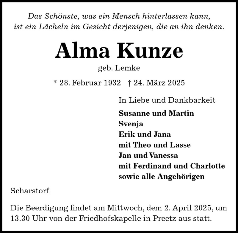 Alma Kunze geb. Lemke
