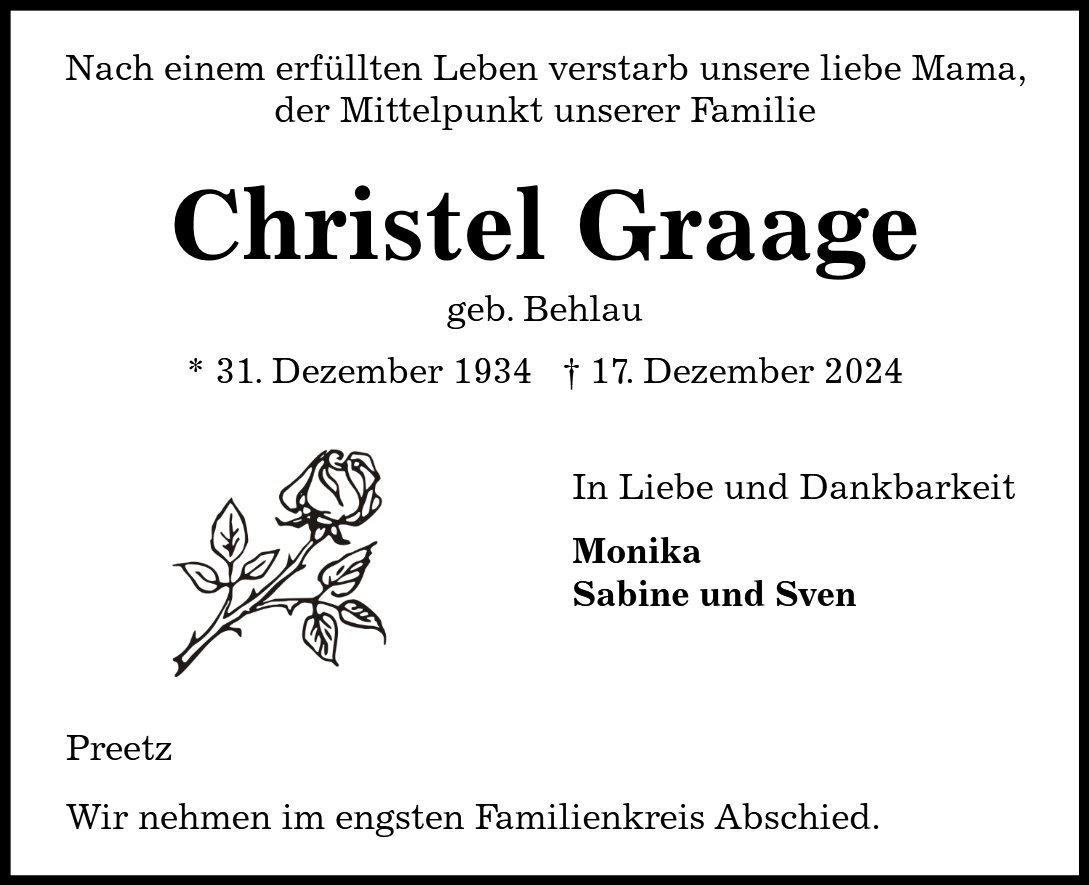 Christel Graagegestorben am 17. Dezember 2024