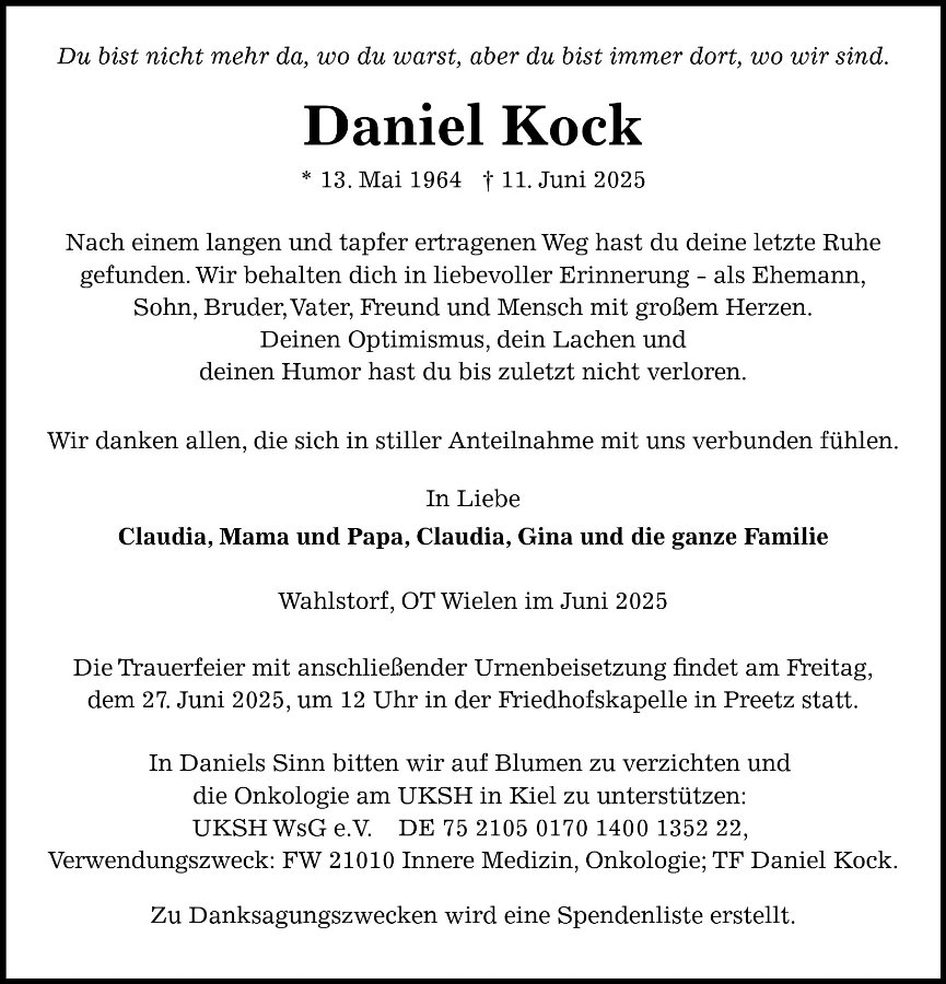Daniel Kockgestorben am 11. Juni 2025