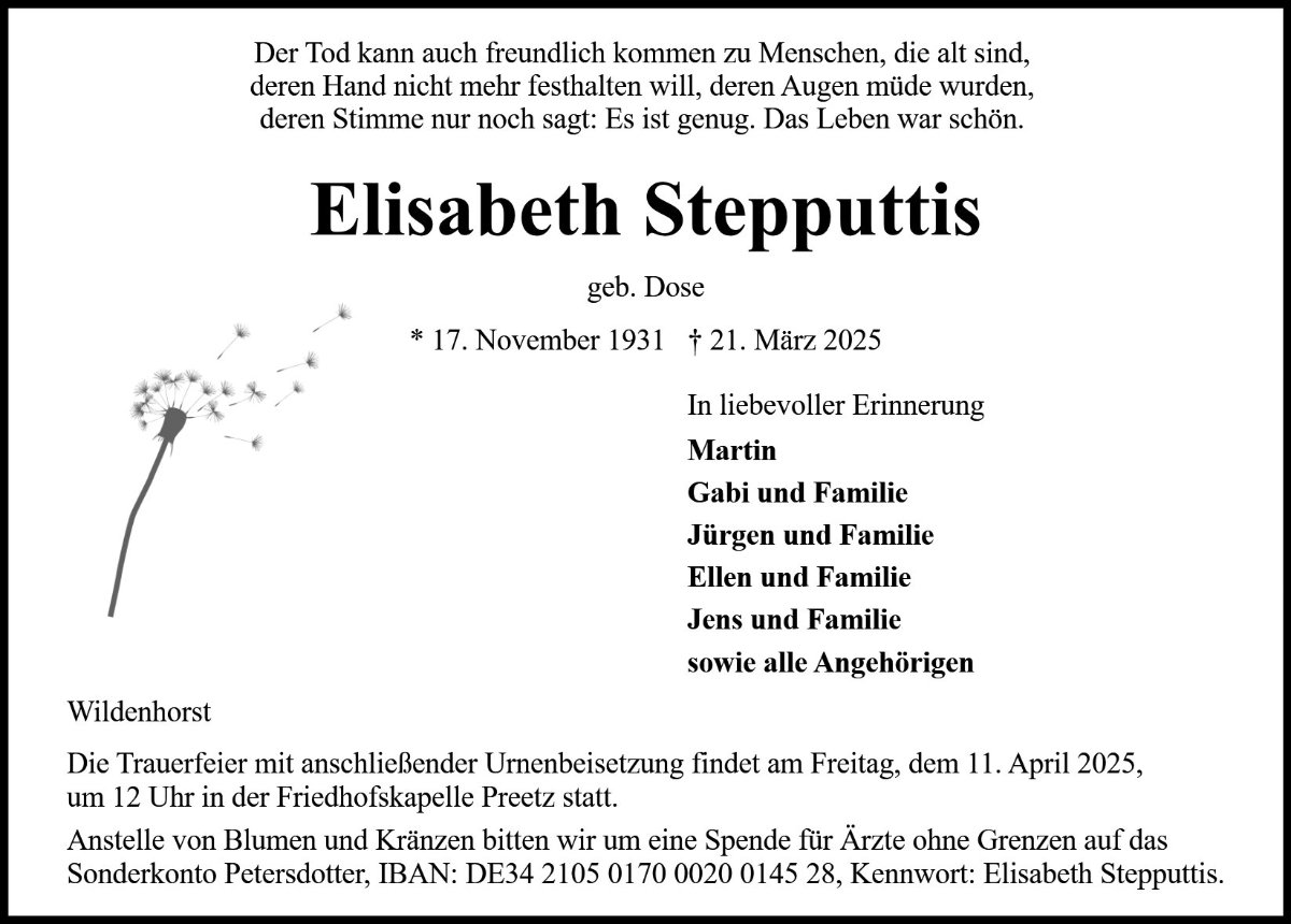 Elisabeth Stepputtisgestorben am 21. März 2025