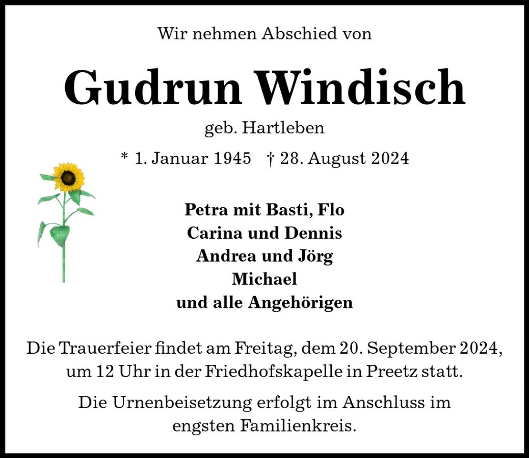 Mit großer Bestürzung habe ich die Traueranzeige von Eurer Mutti Gudrun gelesen!