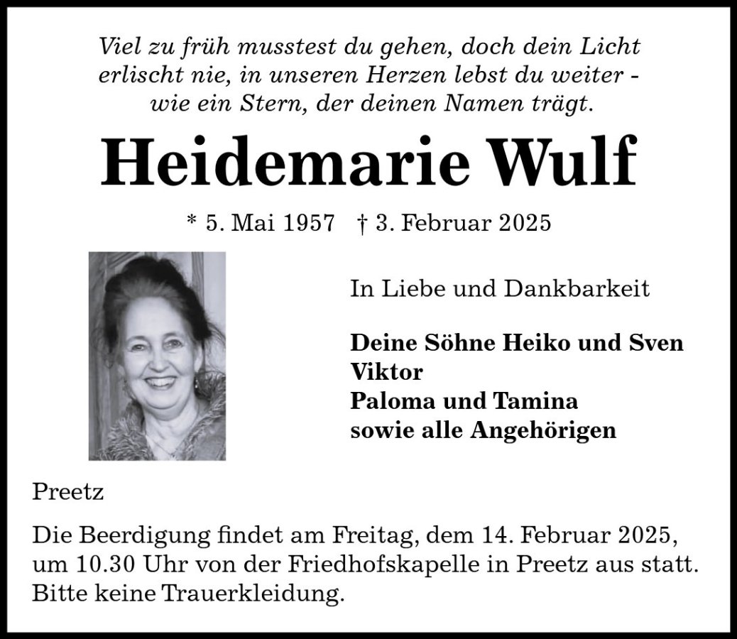Heidemarie Wulfgestorben am 3. Februar 2025