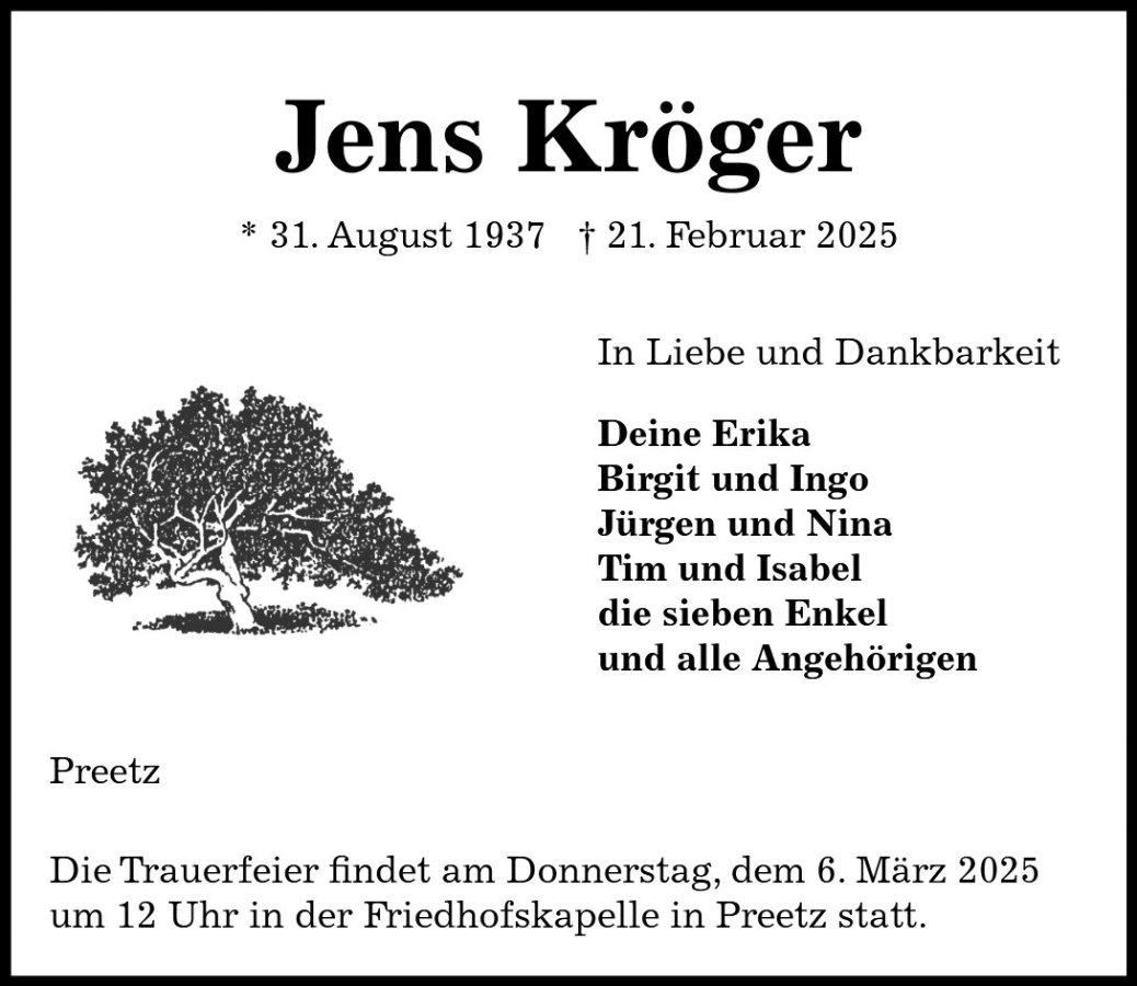 gestorben am 21. Februar 2025 in Schwentinental