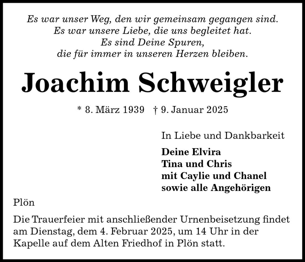 Joachim Schweiglergestorben am 9. Januar 2025