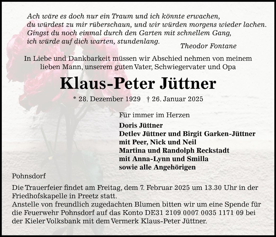 Klaus-Peter Jüttnergestorben am 26. Januar 2025