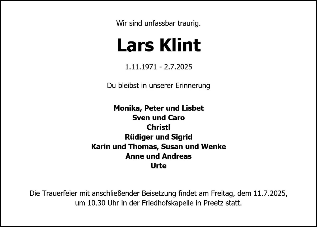 Lars Klintgestorben am 2. Juli 2025