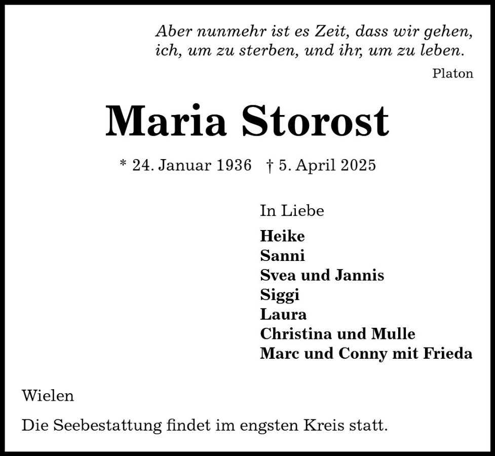 Maria Storostgestorben am 5. April 2025