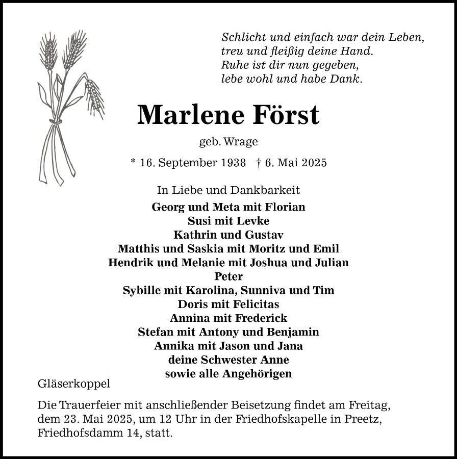 gestorben am 6. Mai 2025 in Wahlstorf