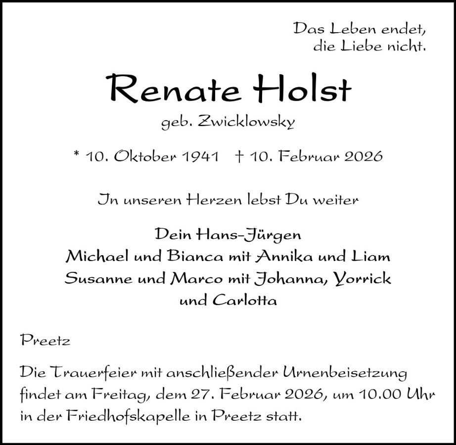 Renate Holst geb. Zwicklowsky
