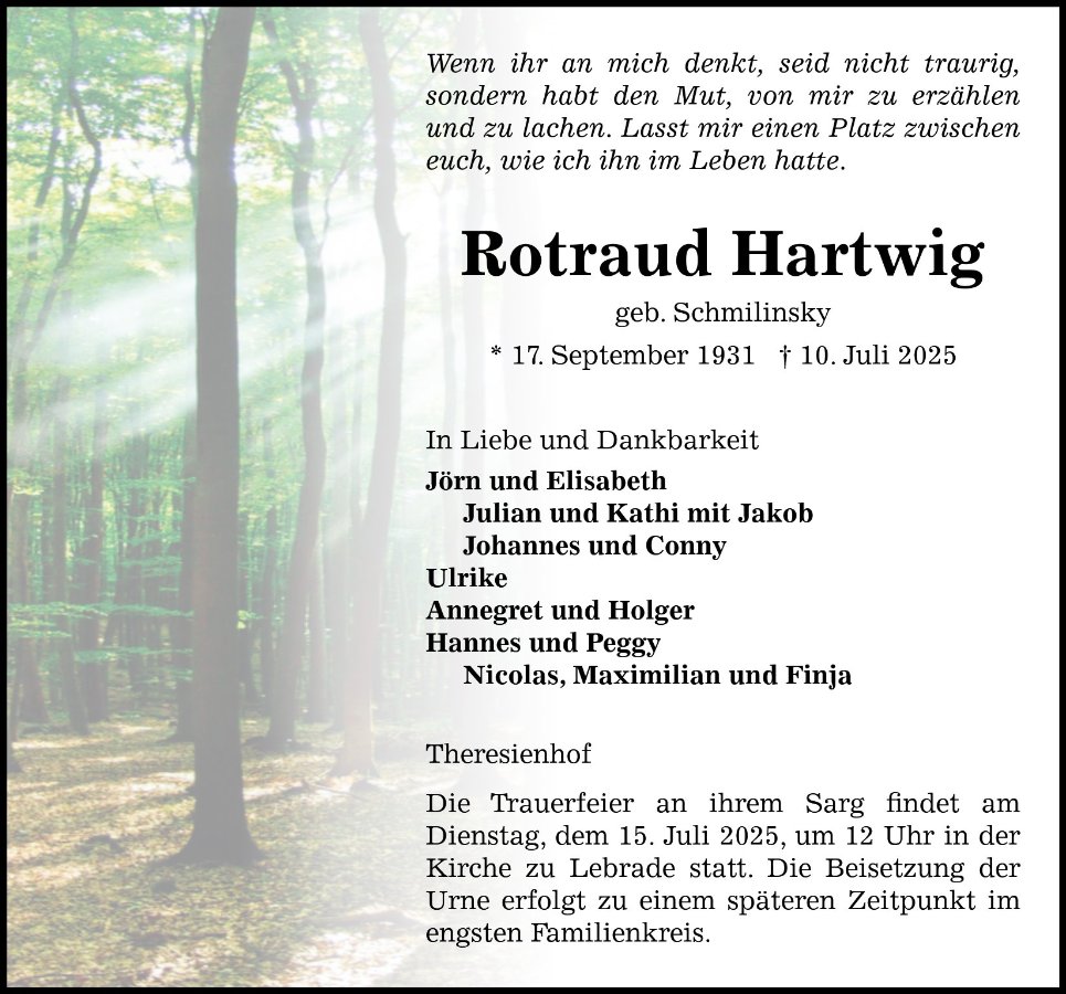 Rotraud Hartwiggestorben am 10. Juli 2025